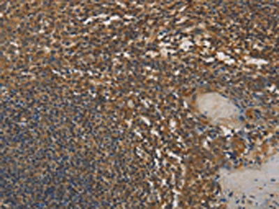 The image on the left is immunohistochemistry of paraffin-embedded Human tonsil tissue using CSB-PA337435(DAB2 Antibody) at dilution 1/25, on the right is treated with fusion protein. (Original magnification: ×200)