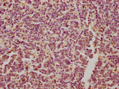 IHC image of CSB-PA613486NA01HU diluted at 1:300 and staining in paraffin-embedded human glioma performed on a Leica BondTM system. After dewaxing and hydration, antigen retrieval was mediated by high pressure in a citrate buffer (pH 6.0). Section was blocked with 10% normal goat serum 30min at RT. Then primary antibody (1% BSA) was incubated at 4°C overnight. The primary is detected by a biotinylated secondary antibody and visualized using an HRP conjugated SP system.