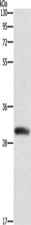 Gel: 10%SDS-PAGE, Lysate: 40 μg, Lane: Mouse heart tissue, Primary antibody: CSB-PA283493(DCK Antibody) at dilution 1/550, Secondary antibody: Goat anti rabbit IgG at 1/8000 dilution, Exposure time: 1 second