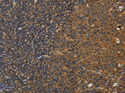 The image on the left is immunohistochemistry of paraffin-embedded Human tonsil tissue using CSB-PA919681(DCTN5 Antibody) at dilution 1/25, on the right is treated with fusion protein. (Original magnification: ×200)
