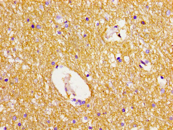 Immunohistochemistry of paraffin-embedded human brain tissue using CSB-PA621882LA01HU at dilution of 1:100