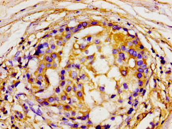 Immunohistochemistry of paraffin-embedded human breast cancer using CSB-PA621882LA01HU at dilution of 1:100