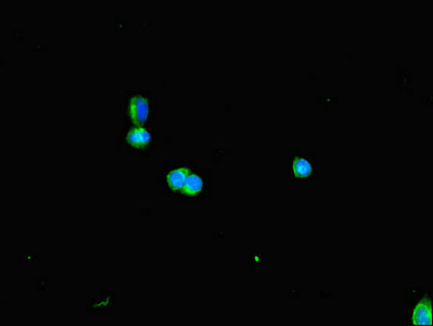 Immunofluorescent analysis of HepG2 cells using CSB-PA850845LA01HU at dilution of 1:100 and Alexa Fluor 488-congugated AffiniPure Goat Anti-Rabbit IgG(H+L)