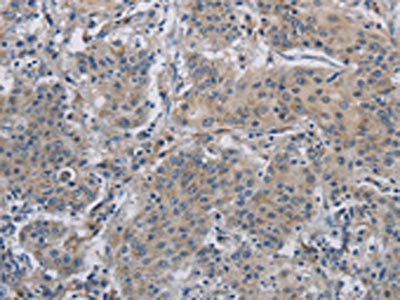 The image on the left is immunohistochemistry of paraffin-embedded Human liver cancer tissue using CSB-PA727123(DNAJB4 Antibody) at dilution 1/50, on the right is treated with fusion protein. (Original magnification: ×200)