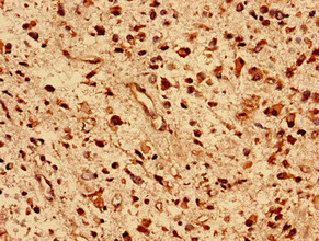 Immunohistochemistry analysis of human glioma using CSB-PA007011LA01HU at dilution of 1:100