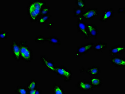 Immunofluorescent analysis of Hela cells using CSB-PA007040LA01HU at dilution of 1:100 and Alexa Fluor 488-congugated AffiniPure Goat Anti-Rabbit IgG(H+L)