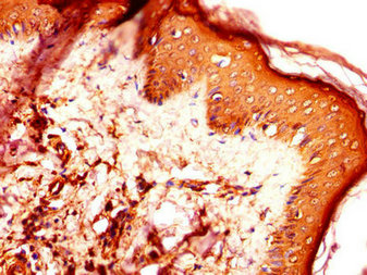 Immunohistochemistry of paraffin-embedded human skin tissue using CSB-PA007040LA01HU at dilution of 1:100