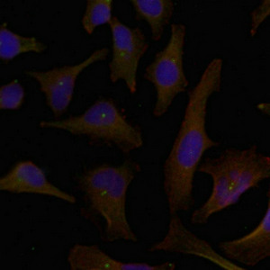 Immunofluorescence staining of methanol-fixed Hela cells using p62Dok(Ab-398) Antibody.