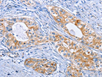 The image on the left is immunohistochemistry of paraffin-embedded Human cervical cancer tissue using CSB-PA252610(DOK4 Antibody) at dilution 1/50, on the right is treated with fusion protein. (Original magnification: ×200)
