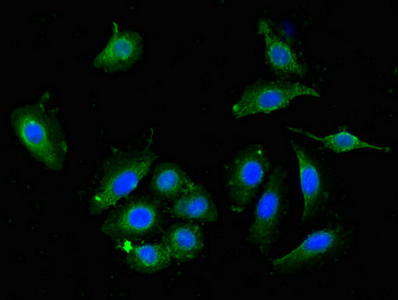 Immunofluorescent analysis of A549 cells using CSB-PA007172LA01HU at dilution of 1:100 and Alexa Fluor 488-congugated AffiniPure Goat Anti-Rabbit IgG(H+L)