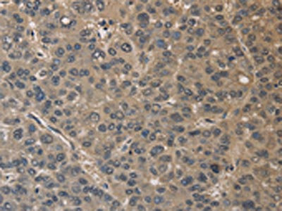 The image on the left is immunohistochemistry of paraffin-embedded Human liver cancer tissue using CSB-PA696333(DRG1 Antibody) at dilution 1/30, on the right is treated with fusion protein. (Original magnification: ×200)