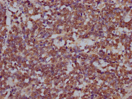 IHC image of CSB-PA889096LA01HU diluted at 1:200 and staining in paraffin-embedded human lung cancer performed on a Leica BondTM system. After dewaxing and hydration, antigen retrieval was mediated by high pressure in a citrate buffer (pH 6.0). Section was blocked with 10% normal goat serum 30min at RT. Then primary antibody (1% BSA) was incubated at 4°C overnight. The primary is detected by a Goat anti-rabbit IgG labeled by HRP and visualized using 0.05% DAB.