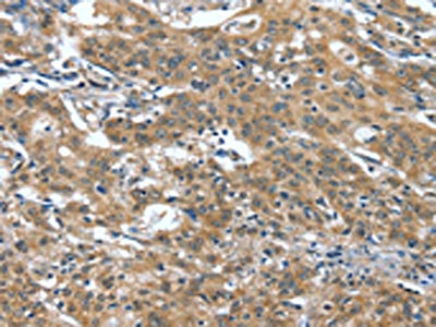 The image on the left is immunohistochemistry of paraffin-embedded Human gastric cancer tissue using CSB-PA199144(DTX1 Antibody) at dilution 1/40, on the right is treated with synthetic peptide. (Original magnification: ×200)