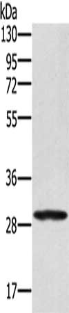 Gel: 8%SDS-PAGE, Lysate: 40 μg, Lane: 293T cells, Primary antibody: CSB-PA025575(EDA2R Antibody) at dilution 1/250, Secondary antibody: Goat anti rabbit IgG at 1/8000 dilution, Exposure time: 10 seconds