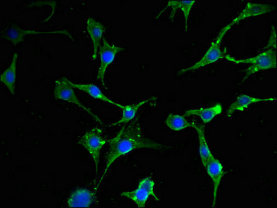 Immunofluorescent analysis of MCF-7 cells using CSB-PA007523LA01HU at dilution of 1:100 and Alexa Fluor 488-congugated AffiniPure Goat Anti-Rabbit IgG(H+L)