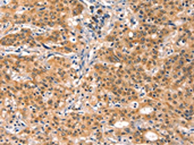 The image on the left is immunohistochemistry of paraffin-embedded Human gastric cancer tissue using CSB-PA243767(EIF4G1 Antibody) at dilution 1/30, on the right is treated with synthetic peptide. (Original magnification: ×200)