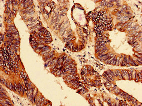 Immunohistochemistry analysis of human colon cancer using CSB-PA007593LA01HU at dilution of 1:100
