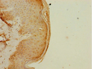 Immunohistochemistry of paraffin-embedded human skin tissue using CSB-PA618015DSR2HU at dilution of 1:100
