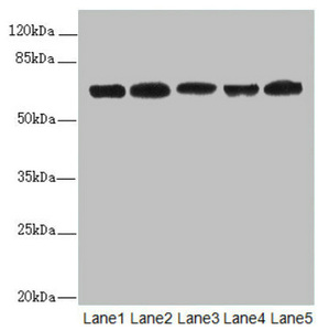 Predicted band size: 64, 63, 57, 58, 55 kDa