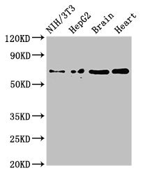 Positive WB detected in: NIH/3T3 whole cell lysate, HepG2 whole cell lysate, Mouse brain tissue, Rat heart tissue