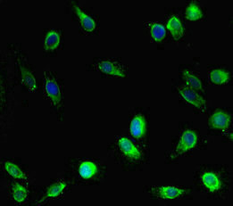 Immunofluorescent analysis of Hela cells using CSB-PA007738LA01HU at dilution of 1:100 and Alexa Fluor 488-congugated AffiniPure Goat Anti-Rabbit IgG(H+L)