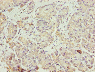 Immunohistochemistry of paraffin-embedded human pancreatic tissue using CSB-PA774834LA01HU at dilution of 1:100