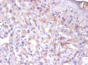 Immunohistochemistry of paraffin-embedded human liver tissue using CSB-PA05344A0Rb at dilution of 1:100