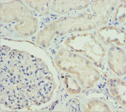 Immunohistochemistry of paraffin-embedded human kidney tissue using CSB-PA007844ESR1HU at dilution of 1:100