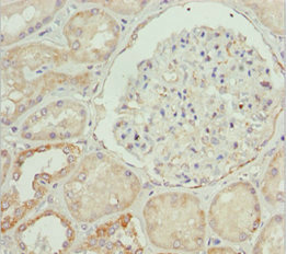 Immunohistochemistry of paraffin-embedded human kidney tissue using CSB-PA007844ESR2HU at dilution of 1:100