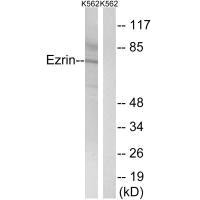 免疫原:Synthesized non-phosphopeptide derived from Human Ezrin around the phosphorylation site of tyrosine 478 (P-V-Y(p)-E-P).