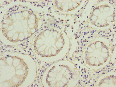 Immunohistochemistry of paraffin-embedded human colon cancer using CSB-PA007940YA01HU at dilution of 1:100