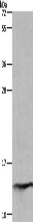 Gel: 10%SDS-PAGE, Lysate: 40 μg, Lane: Mouse small intestine tissue, Primary antibody: CSB-PA133408(FABP2 Antibody) at dilution 1/300, Secondary antibody: Goat anti rabbit IgG at 1/8000 dilution, Exposure time: 2 minutes