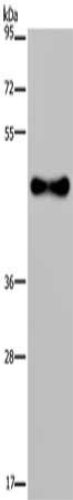 Gel: 8%SDS-PAGE, Lysate: 40 μg, Lane: Human fetal brain tissue, Primary antibody: CSB-PA607012(FADS1 Antibody) at dilution 1/300, Secondary antibody: Goat anti rabbit IgG at 1/8000 dilution, Exposure time: 10 seconds