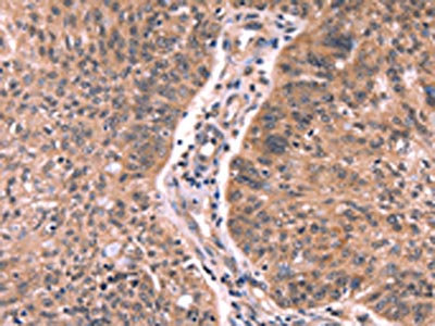 The image on the left is immunohistochemistry of paraffin-embedded Human ovarian cancer tissue using CSB-PA243625(FAIM Antibody) at dilution 1/25, on the right is treated with synthetic peptide. (Original magnification: ×200)