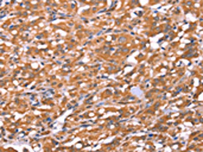 The image on the left is immunohistochemistry of paraffin-embedded Human gastric cancer tissue using CSB-PA023220(FAM13B Antibody) at dilution 1/20, on the right is treated with synthetic peptide. (Original magnification: ×200)