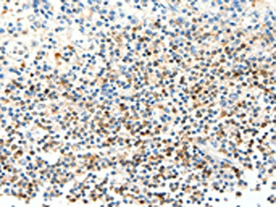 The image on the left is immunohistochemistry of paraffin-embedded Human tonsil tissue using CSB-PA938413(FAM3A Antibody) at dilution 1/25, on the right is treated with fusion protein. (Original magnification: ×200)