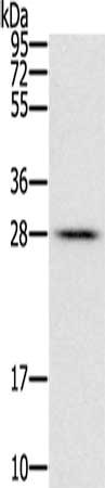 Gel: 12%SDS-PAGE, Lysate: 40 μg, Lane: Mouse liver tissue, Primary antibody: CSB-PA290518(FAM89B Antibody) at dilution 1/400, Secondary antibody: Goat anti rabbit IgG at 1/8000 dilution, Exposure time: 10 seconds