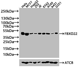 產品名稱:Rabbit anti-Homo sapiens (Human) FBXO22 Polyclonal antibody