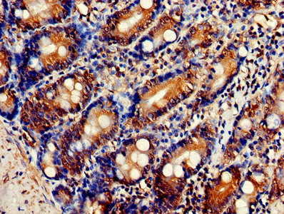 Immunohistochemistry of paraffin-embedded human small intestine tissue using CSB-PA008699HA01HU at dilution of 1:100