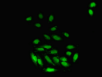 Immunofluorescent analysis of A549 cells using CSB-PA008699HA01HU at dilution of 1:100 and Alexa Fluor 488-congugated AffiniPure Goat Anti-Rabbit IgG(H+L)