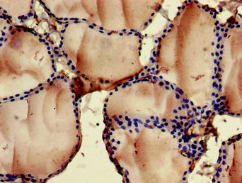 Immunohistochemistry of paraffin-embedded human thyroid tissue using CSB-PA008829LA01HU at dilution of 1:100