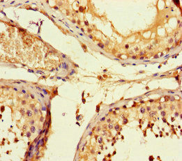 Immunohistochemistry of paraffin-embedded human testis tissue using CSB-PA613266LA01HU at dilution of 1:100