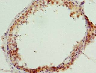 Immunohistochemistry of paraffin-embedded human testis tissue using CSB-PA638451DSR2HU at dilution of 1:100