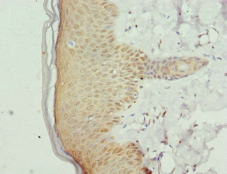 Immunohistochemistry of paraffin-embedded human skin tissue using CSB-PA638451DSR2HU at dilution of 1:100