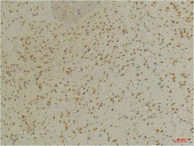 Immunohistochemical analysis of paraffin-embedded Rat BrainTissue using GABA A Receptor α3 Rabbit pAb diluted at 1:200.