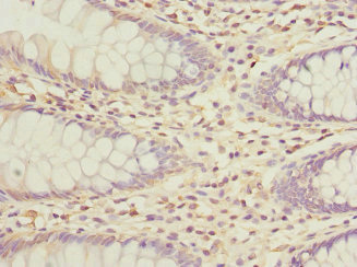 Immunohistochemistry of paraffin-embedded human colon cancer using CSB-PA605995ESR2HU at dilution of 1:100