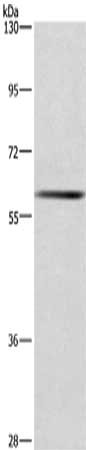 Gel: 6%SDS-PAGE, Lysate: 40 μg, Lane: Mouse liver tissue, Primary antibody: CSB-PA132284(GCKR Antibody) at dilution 1/750, Secondary antibody: Goat anti rabbit IgG at 1/8000 dilution, Exposure time: 10 seconds