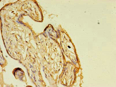 Immunohistochemistry of paraffin-embedded human placenta tissue using CSB-PA009408LA01HU at dilution of 1:100