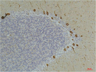 Immunohistochemical analysis of paraffin-embedded Human BrainTissue using Ghrelin Receptor Rabbit pAb diluted at 1:200.