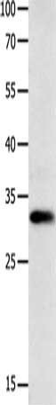 Gel: 10%SDS-PAGE, Lysate: 40 μg, Lane: Hela cells, Primary antibody: CSB-PA093051(GJB3 Antibody) at dilution 1/300, Secondary antibody: Goat anti rabbit IgG at 1/8000 dilution, Exposure time: 30 seconds